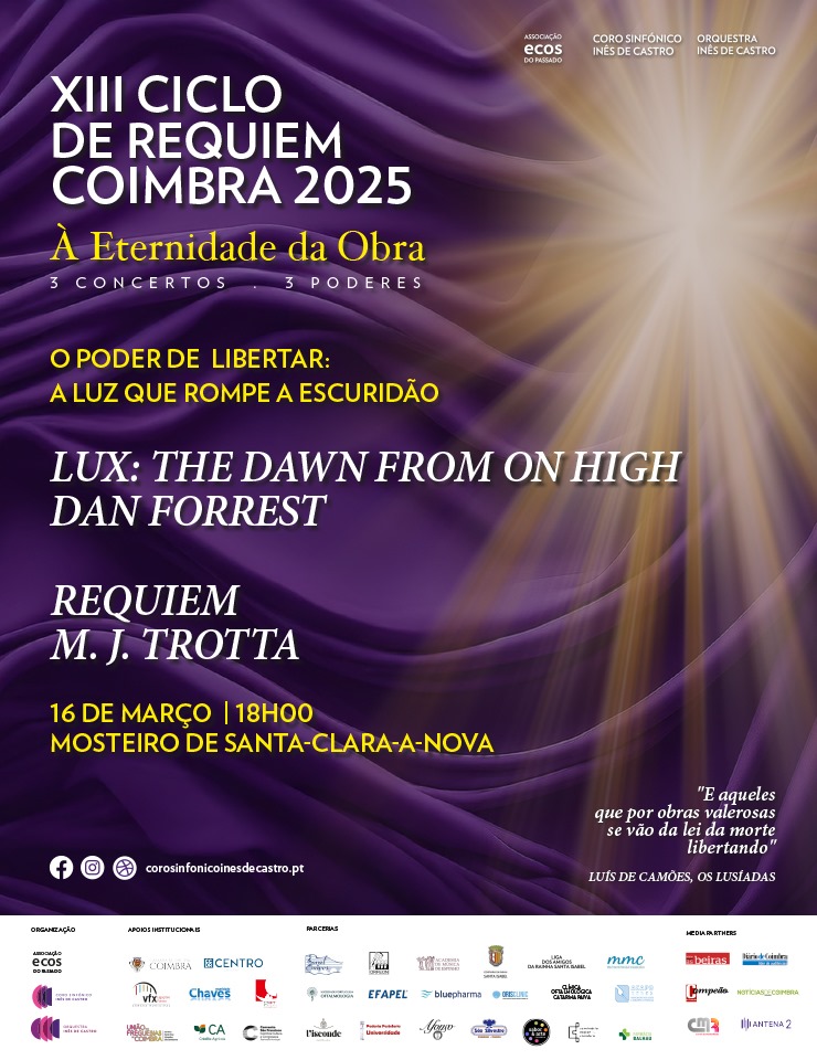 Numa apresentação inédita, as vozes de mais de uma centena de coralistas que integram o Coro Sinfónico Inês de Castro, o Orfeon Académico de Coimbra, o Coro Misto da Universidade de Coimbra e o Coro da Capela da Universidade de Coimbra, interpretam Os Tropos Profanos da obra Magnificat em Talha Dourada de Eurico Carrapatoso (1998) e a obra Oratória de Natal de Camille Saint-Saëns (1858).